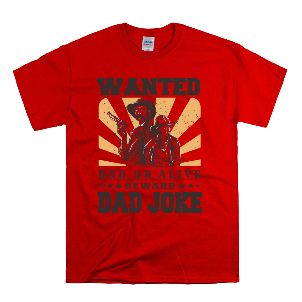 (Large, Red) Dead Or Alive Wanted Reward Dad Joke Men Women Unisex Top T Shirt