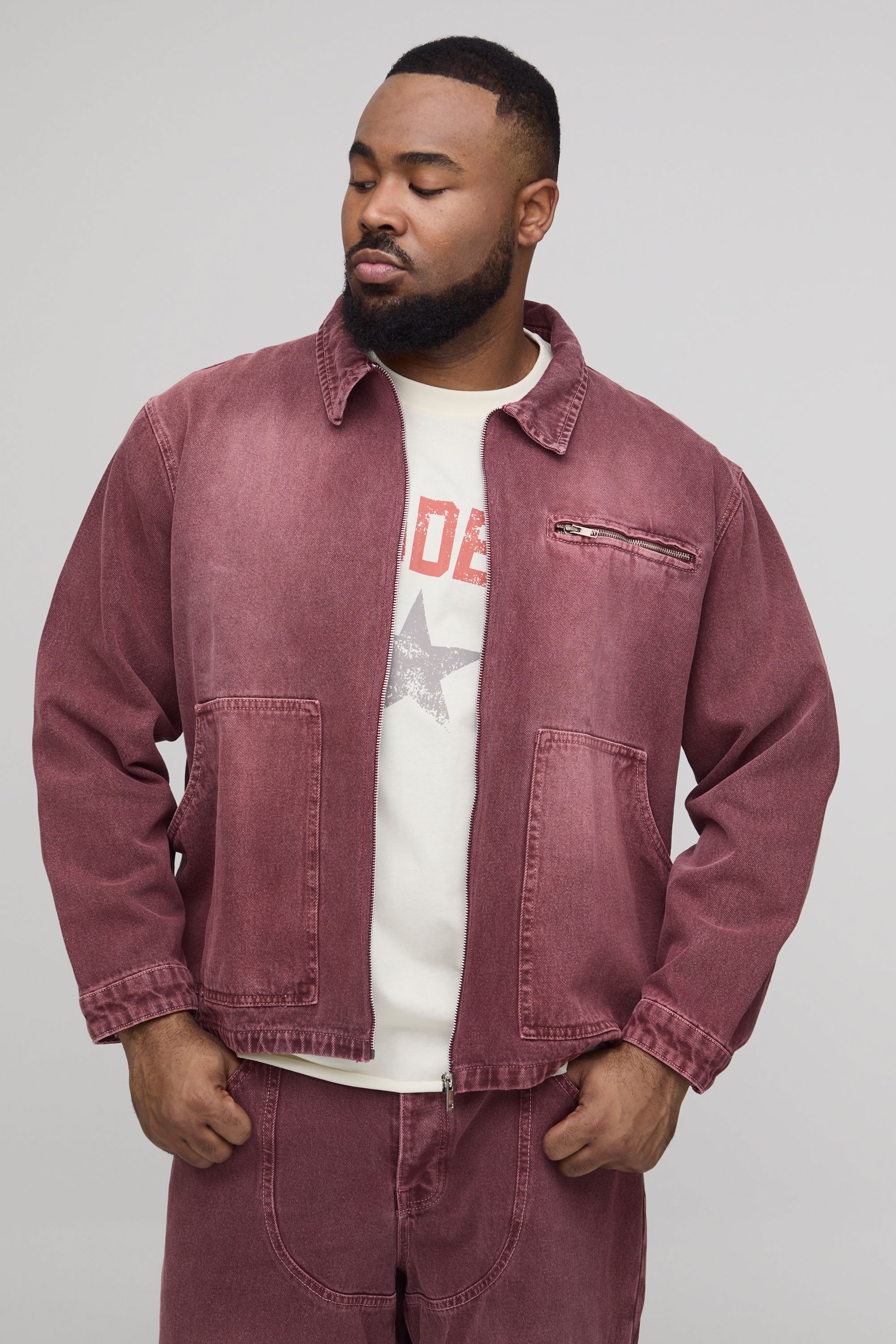 boohooMAN Mens Plus Overdye Western Applique Denim Harrington Jacket - Red Cotton - Size 2XL