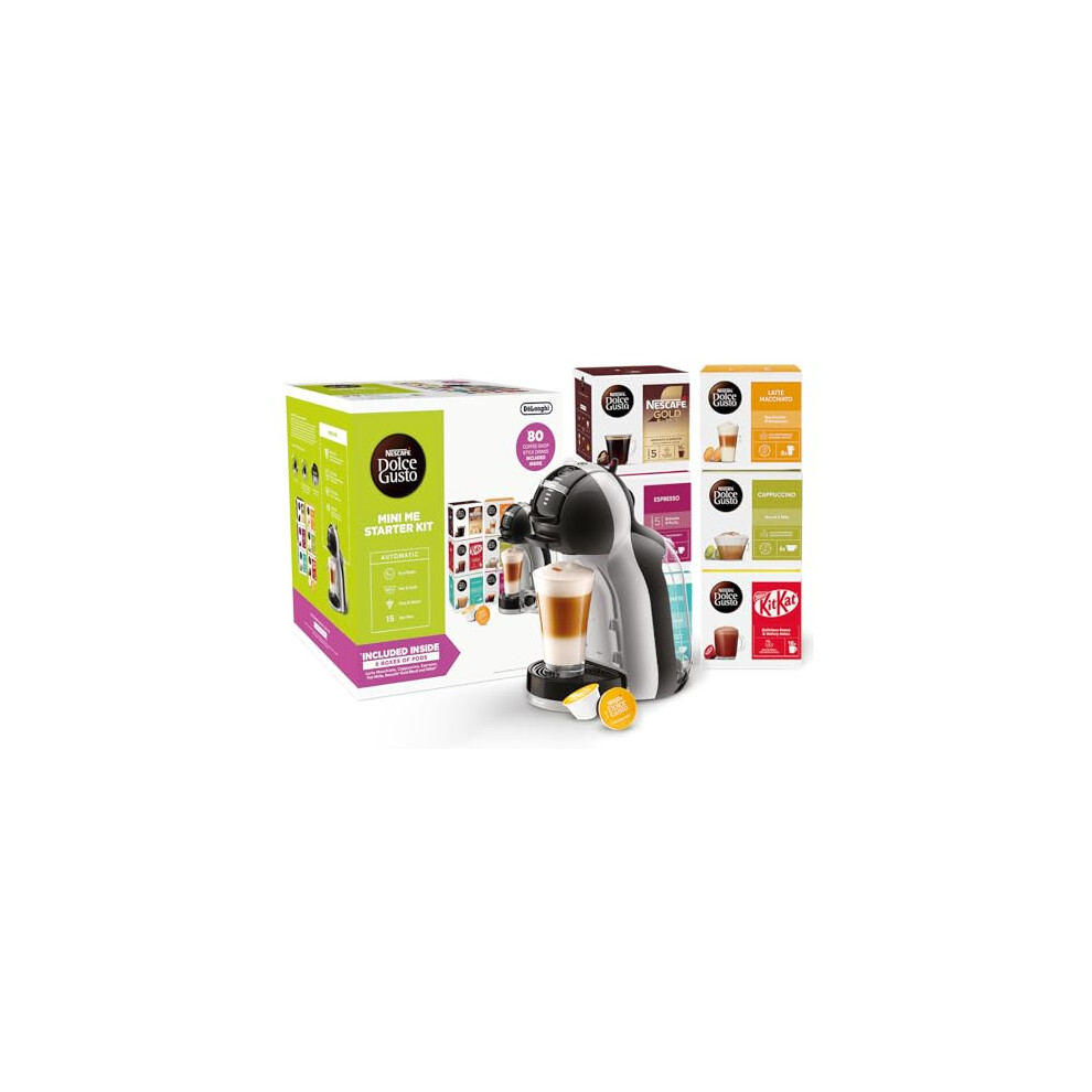 NESCAF? Dolce Gusto EDG155.BG Mini-Me Automatic Coffee Machine Black & Arctic Grey by De?Longhi - Starter Kit
