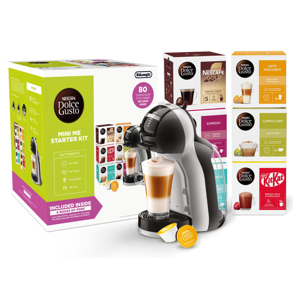 DOLCE GUSTO by De'Longhi Mini Me EDG155.SB Coffee Machine & Starbucks Pods Starter Kit - Black & Arctic Grey, Black,Silver/Grey