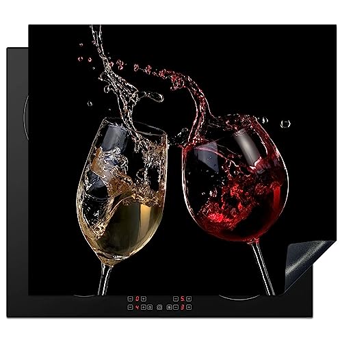 KitchenYeah© Induction Hob Protector Mat 20.1"x23.2" / 59x51 cm Stove Cap Top Cover Kitchen Cooker Covers for Electric Hobs Vinyl Red Wine - White Wine - Glass - Black