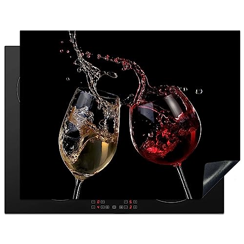 KitchenYeah© Induction Hob Protector Mat 20.5"x27.6" / 70x52 cm Stove Cap Top Cover Kitchen Cooker Covers for Electric Hobs Vinyl Red Wine - White Wine - Glass - Black