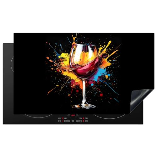 KitchenYeah© Induction Hob Protector Mat 20.1"x30.3" / 77x51 cm Stove Cap Top Cover Kitchen Cooker Covers for Electric Hobs Vinyl Wine - Glass - Graffiti - Drink - Red - Paint