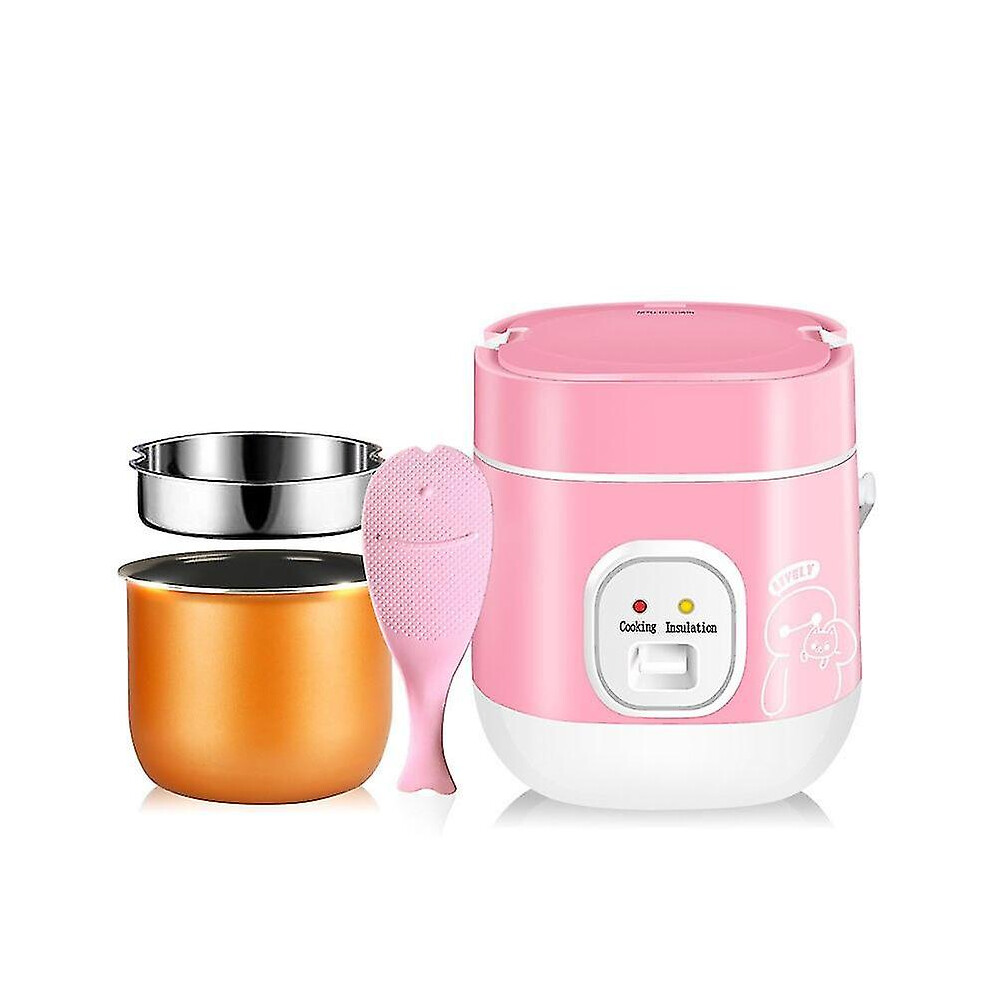 (EU, Red) 1.2l Mini Rice Cooker 2 Layers Steamer Multifunction Cooking Pot Electric Insulation Heating Cooker Food Container Lunch Box