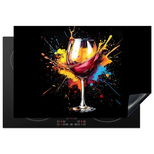 KitchenYeah© Induction Hob Protector Mat 20.5"x23.6" / 60x52 cm Stove Cap Top Cover Kitchen Cooker Covers for Electric Hobs Vinyl Wine - Glass - Graffiti - Drink - Red - Paint