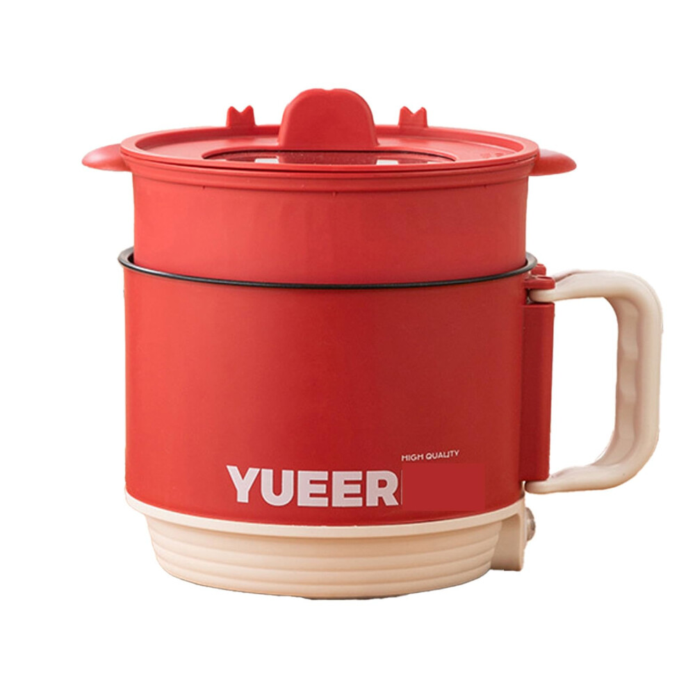 Mini Electric Cooker 1L, Portable Hot Pot for Ramen, Soup, Porridge, Steaming & Frying, Multifunctional All-in-1 Pot, Red