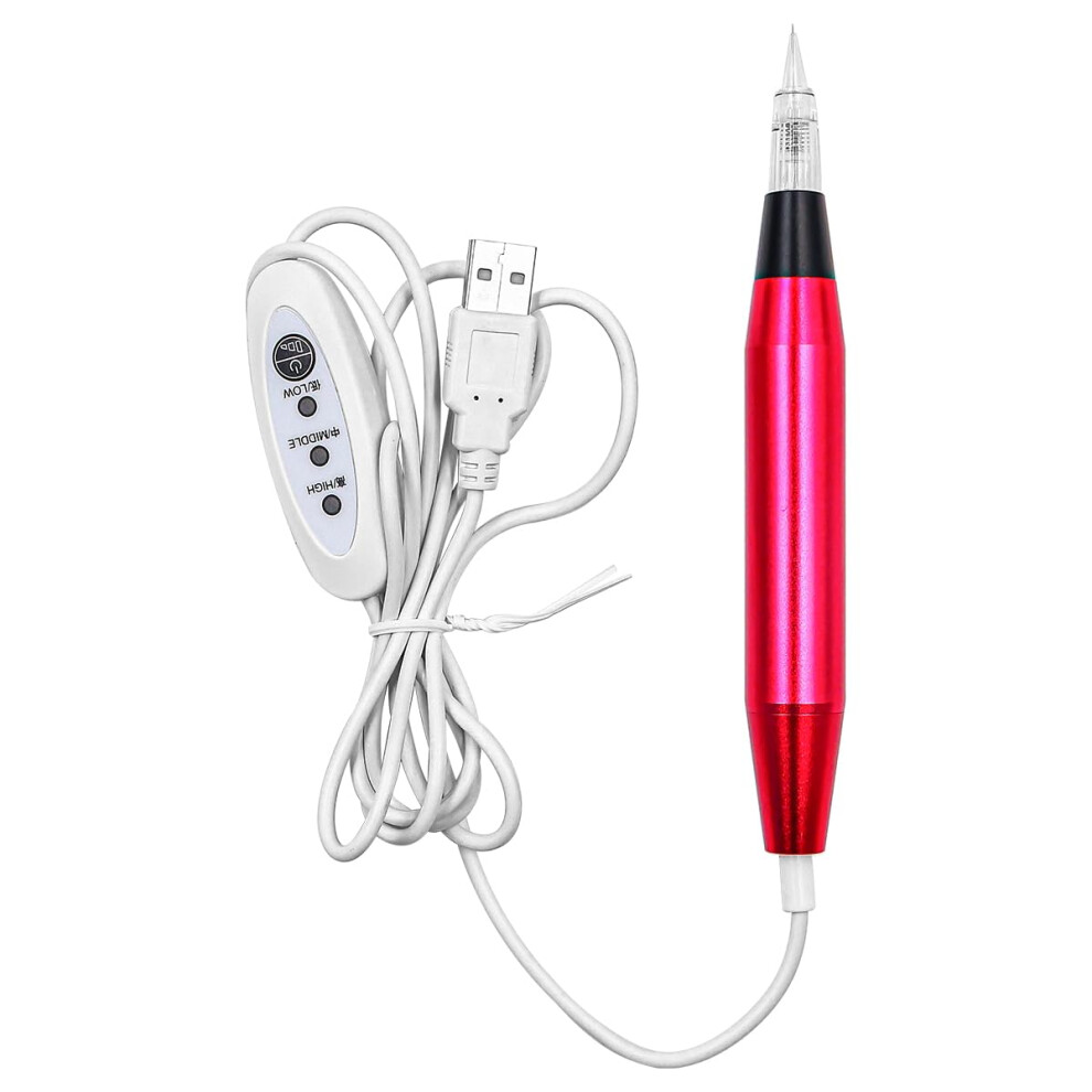 Permanent Makeup Rotary Pen with Automatic Depth Control for Eyebrows Lips Eyeliner Red Aluminum