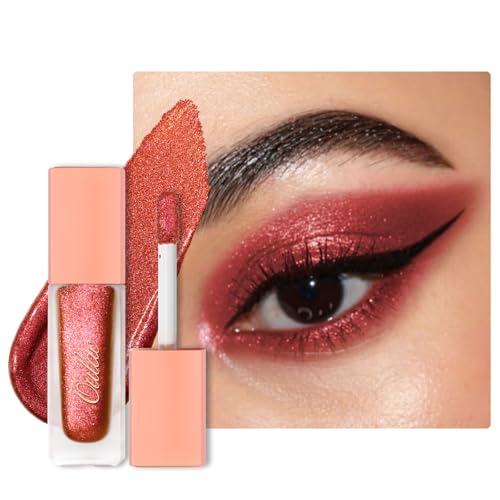 Oulac Liquid Glitter Eyeshadow – Metallic Rust Red Eyeshadow & Eyeliner with Duo Chrome Burgundy and Orange, Vegan, 6.8g, Red Star (18)