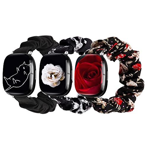 CharmingElf Compatible with Fitbit Versa/Versa 2/Versa Lite Hair Scrunchie Replacement Bands for Women Girls Soft Fabric Elastic Fabric Large Small Pattern (Large, Black/Red)