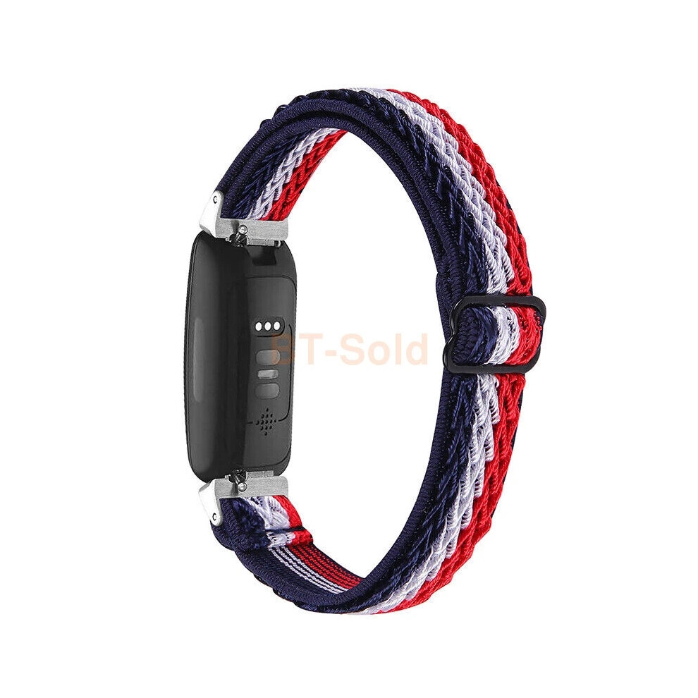 (Blue White Red, Fitbit Inspire 3) For Fitbit Inspire 3/2/1/HR Watchband Elastic Woven Nylon Sport Band Strap HOT