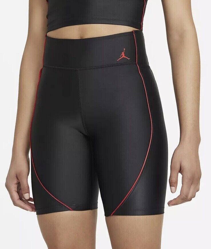 Women's Jordan Essentials Mid-Rise Bike Shorts Sz S Black University Red dc2177
