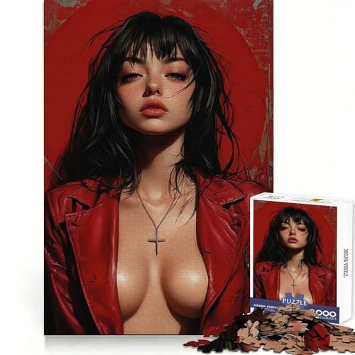 Jigsaw Puzzles for Adults1000 PCS Woman in Red Leather Jacket Adult Puzzles Brain Teaser Game Home Decoration Help The Brain Exercise 1000 PCS