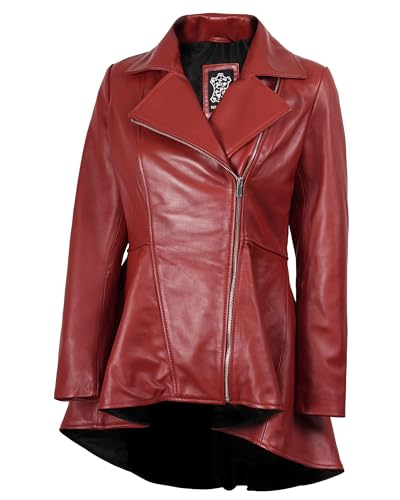 fjackets Long Leather Jacket Women - Clarissa Peplum Red Leather Jacket | [1315315] XL