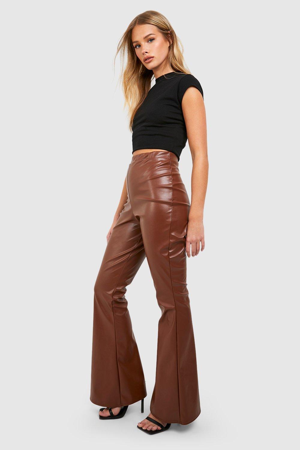 Womens Leather Look High Waisted Seam Front Flared Trousers - 10, Red
