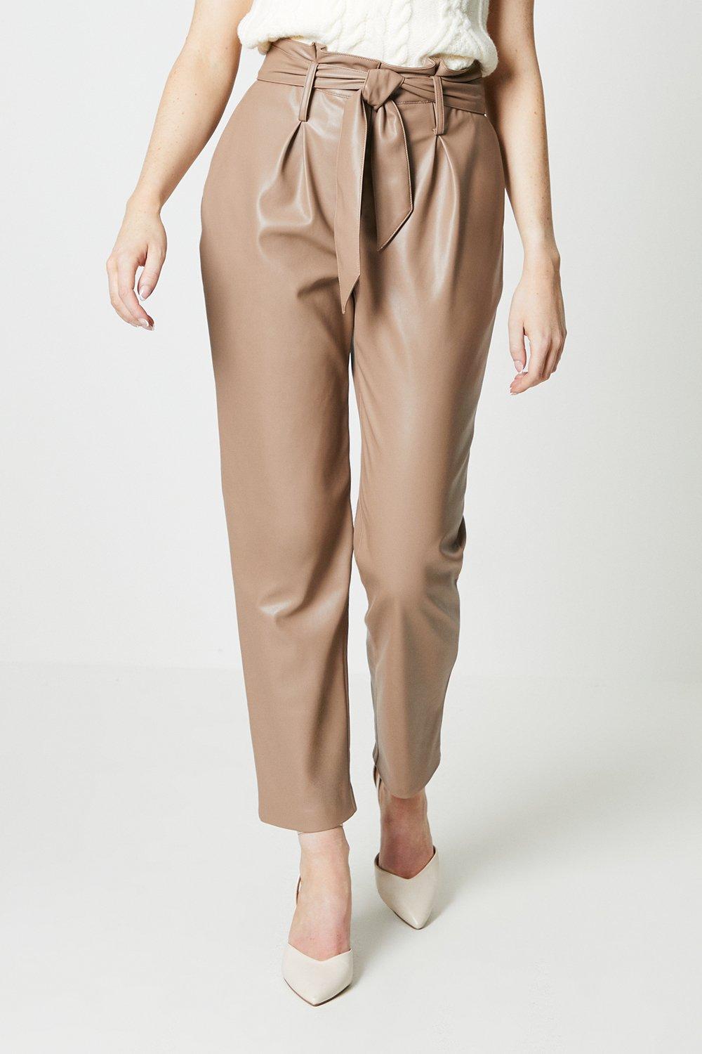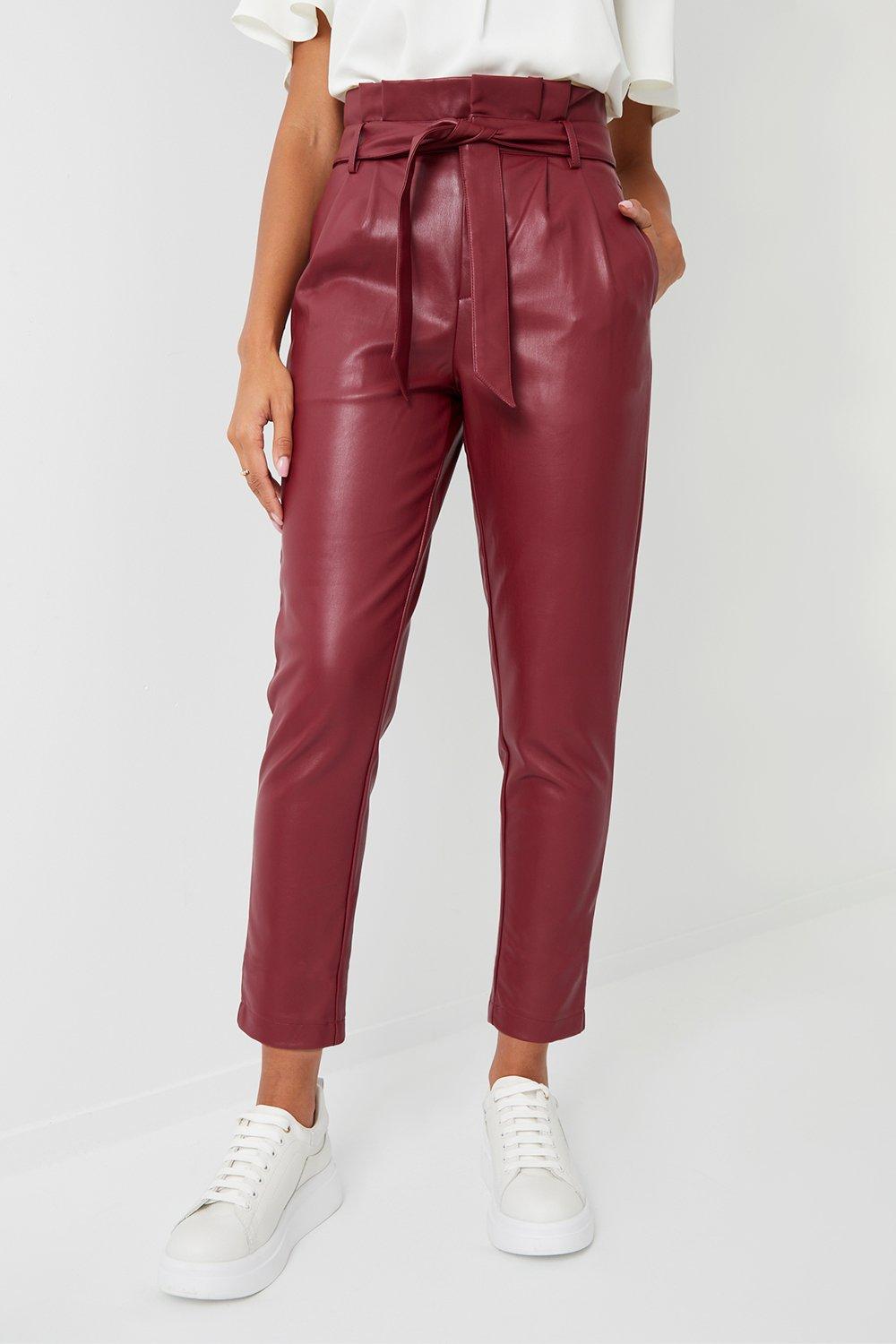 Faux Leather Paperbag High Waisted Tapered Trousers