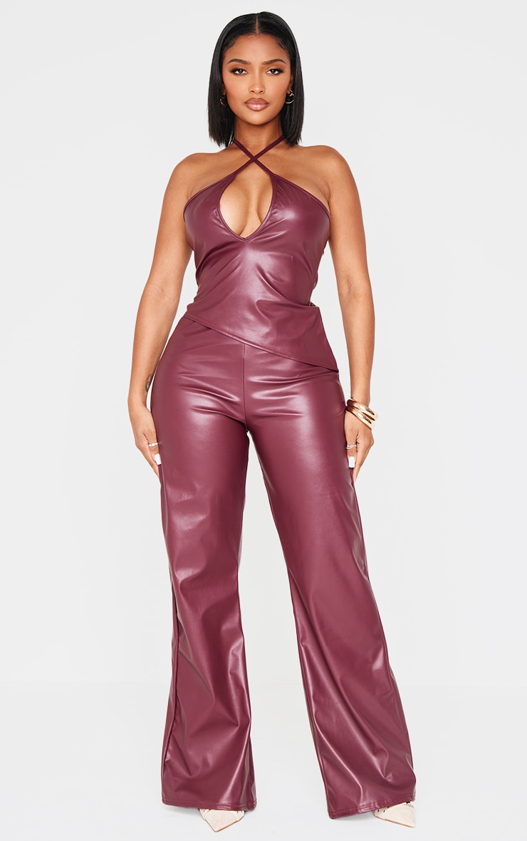 Shape Burgundy Faux Leather Lace Up Flare Trousers
