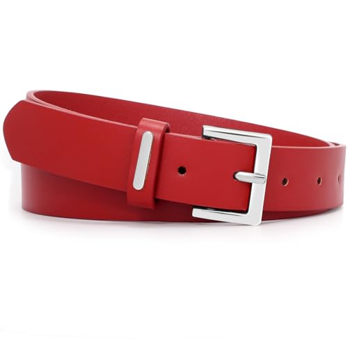 WHIPPY Women Leather Belt for Jeans Dresses Trousers Fashion Casual Belt with Silver Square Buckle,Red 39"