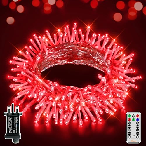 Ollny 10m 100 LED Red Fairy Lights Mains Powered, Waterproof Outdoor String Light with Remote/Plug/Modes/Timer, Bright Lighting Mother's Day Wedding Anniversary Valentine's Day Decorations