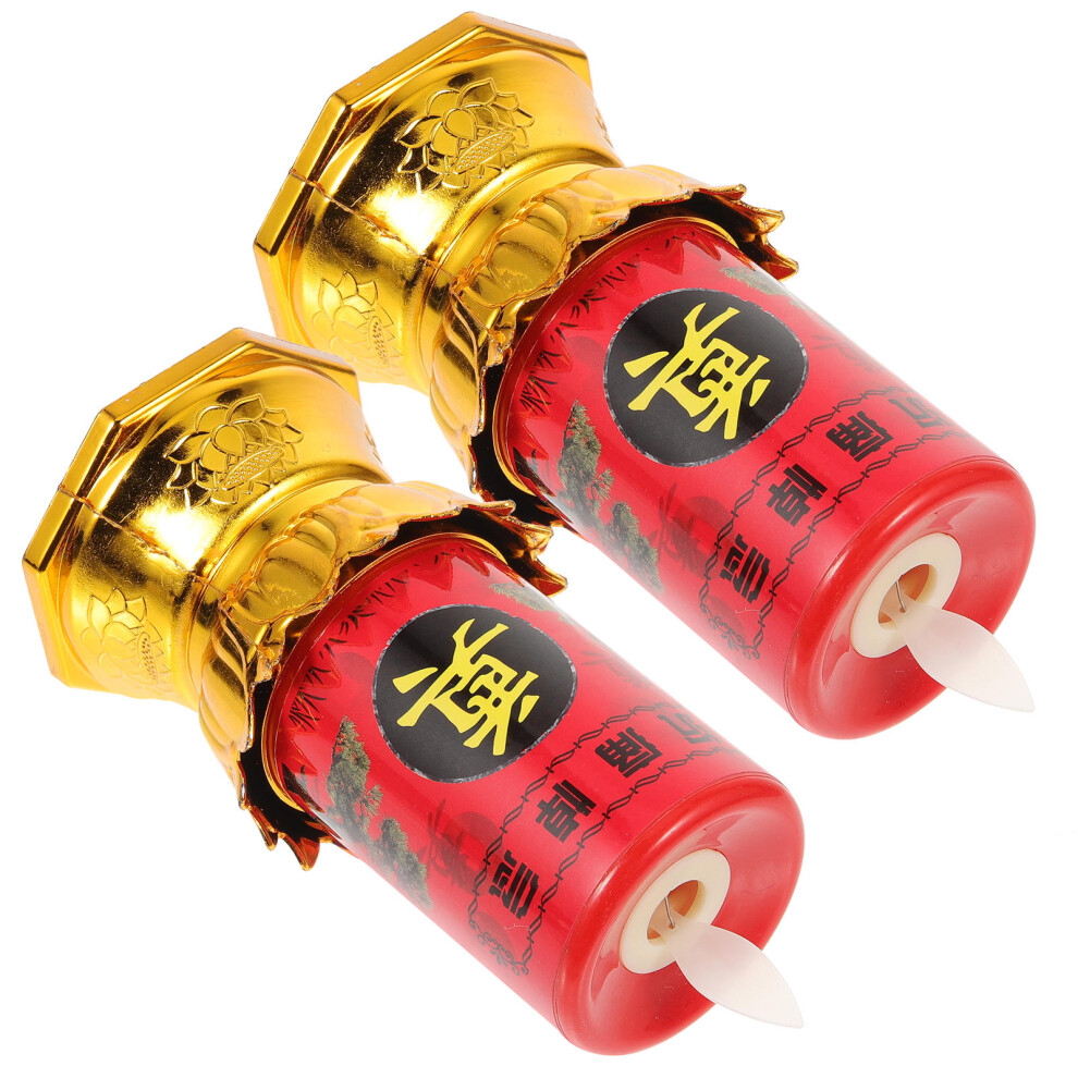 2Pcs Retro Style Red LED Candle Lights for Funeral Decoration