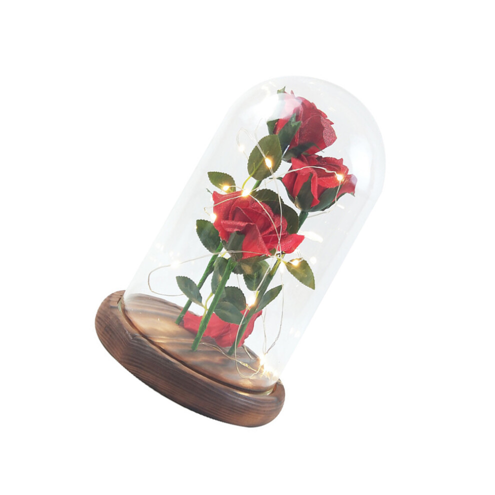2Pcs Red Rose LED Lights In Glass Dome For Valentine'S Day Gift