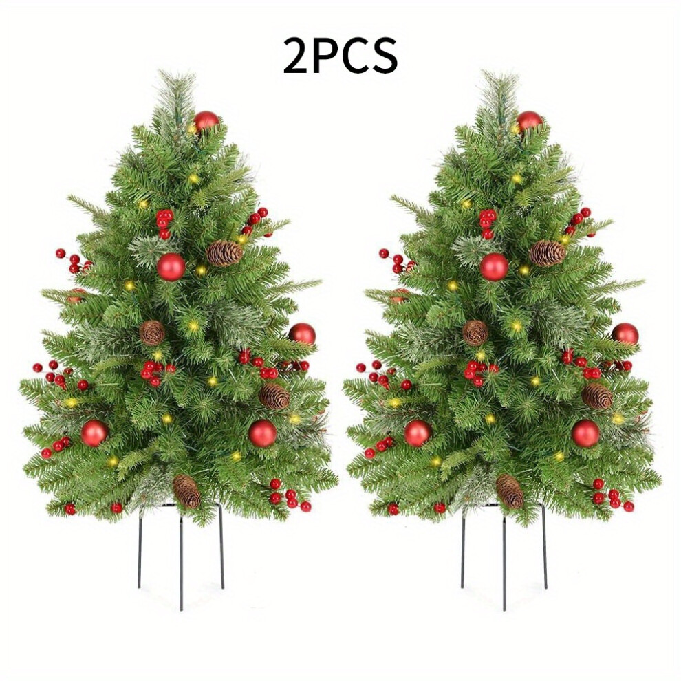 (2 Pieces) 30" Pre-Lit Festive Outdoor Channel Christmas Tree: Artificial Pine Cones, Branches, Red Berries, LED Lights, Battery