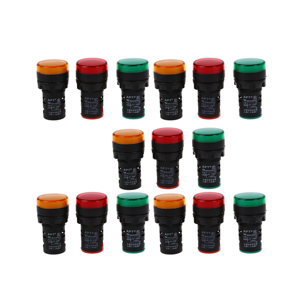 Red, Yellow-Green Light Lamp 22 mm LED Pilot Display Panel AC 220 V 15 Pcs