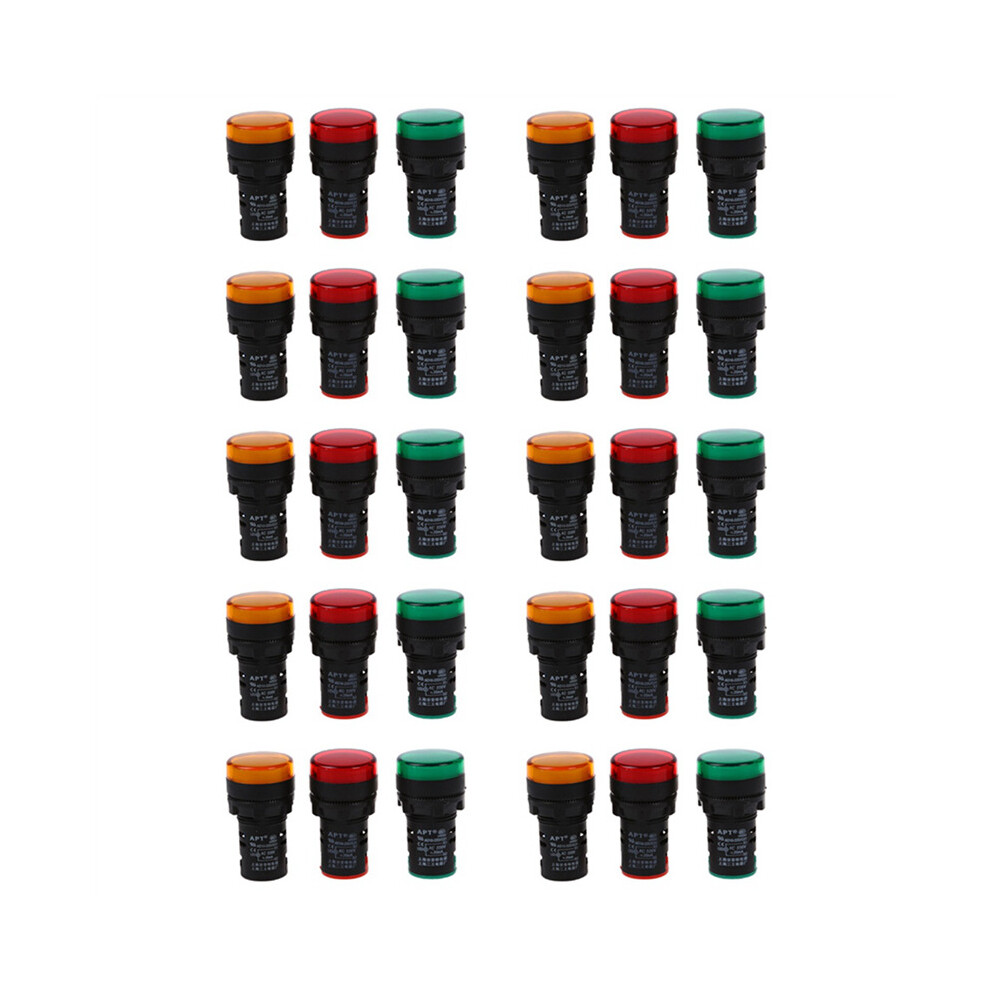 Red, Yellow-Green Light Lamp 22 mm LED Pilot Display Panel AC 220 V 30 Pcs