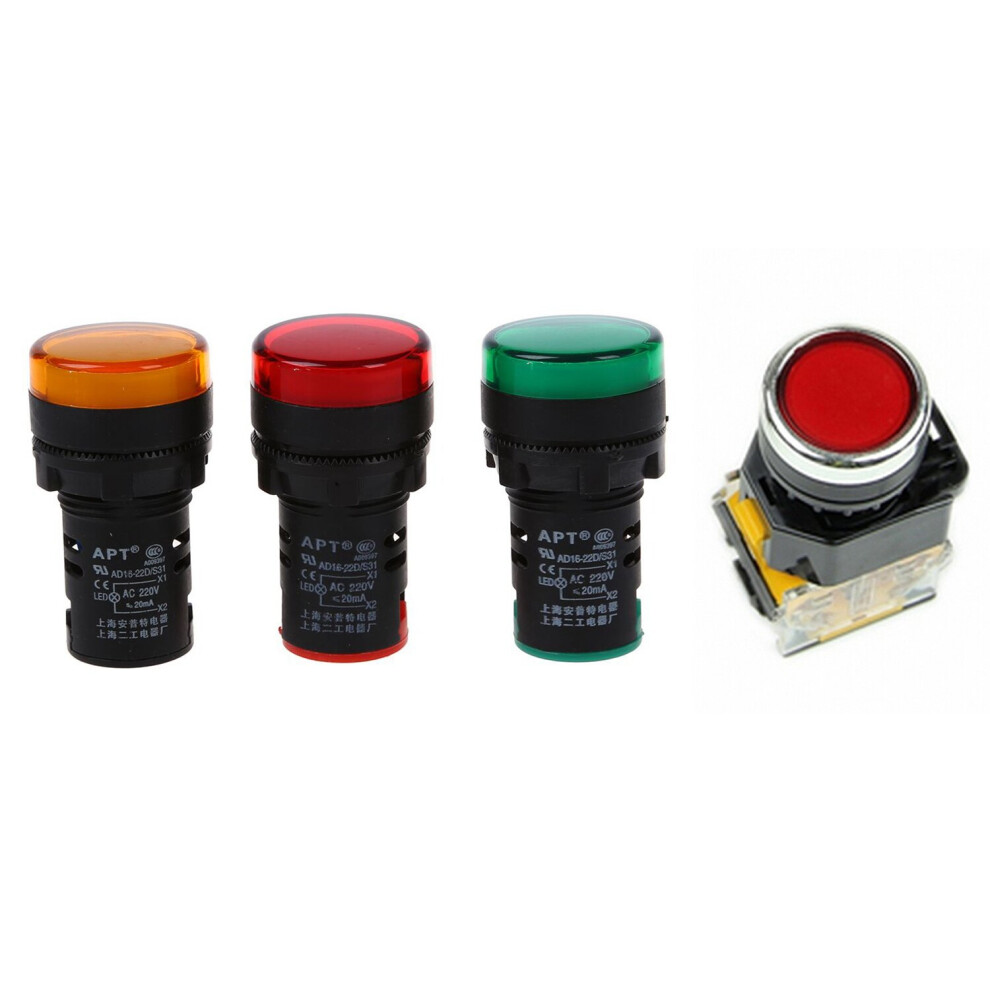 4 Pcs Accessories: 3Pcs Red, Yellow-Green Light Lamp 22 Mm & 1 Pcs LA38-11/203 Push Button Momentary Switch