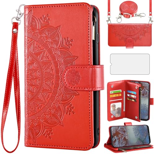 Small Crossbody Wallet Phone Bag for Women Travel Purse for iPhone 16 15 14 13 12 11 Pro Max HONOR X6b Mobile Phone OnePlus 13 5G Nokia G42 5G 6.56 Google Pixel 8 Pro (Red)