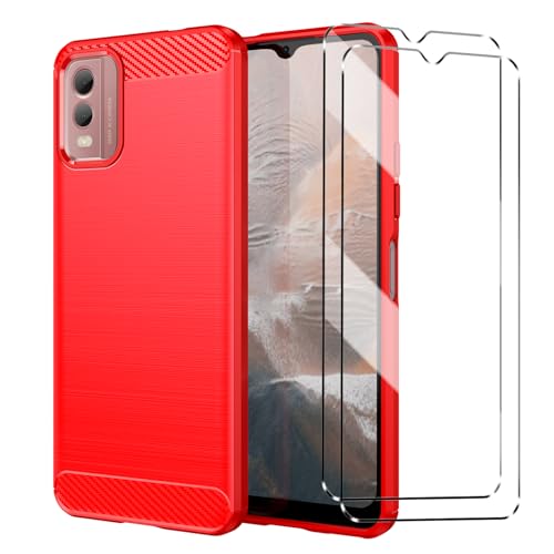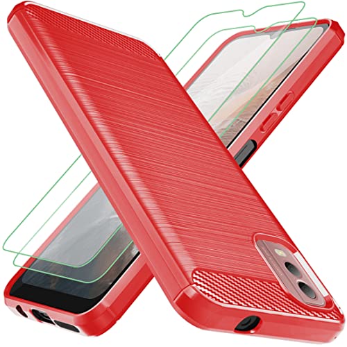 Case Compatible with NOKIA C32 Cover with 2 Pack Tempered Glass Screen Protector for NOKIA C32, Slim Fit Soft TPU Shockproof Anti-Scratch Phone Case Cover - Red