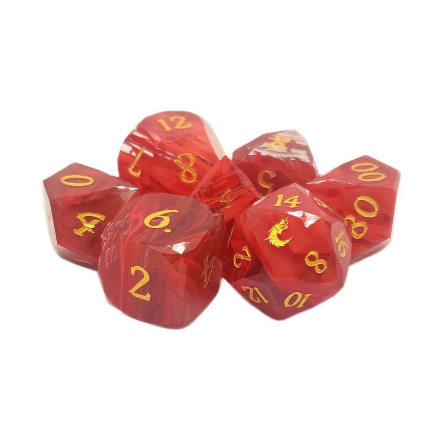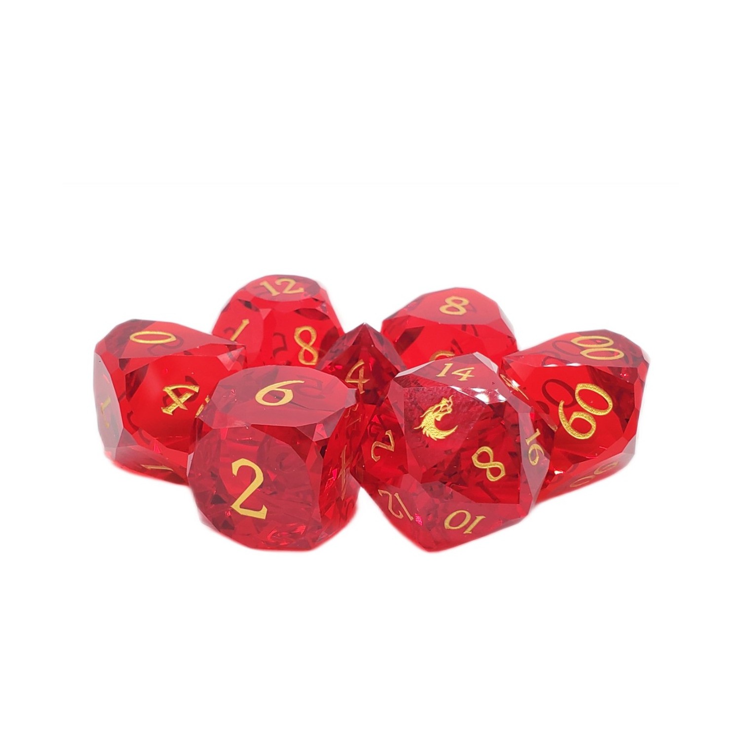 Old School Dice dice & Supplies Poly Set - Diamond Cut, Red Ruby w/Gold ( New