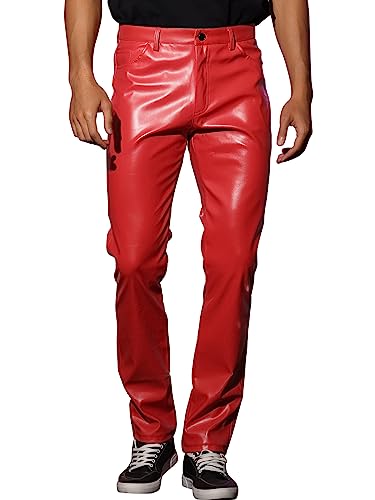 Lars Amadeus Faux Leather Pants for Men's Slim Fit Solid Color Nightclub Disco Skinny Trousers Red 34