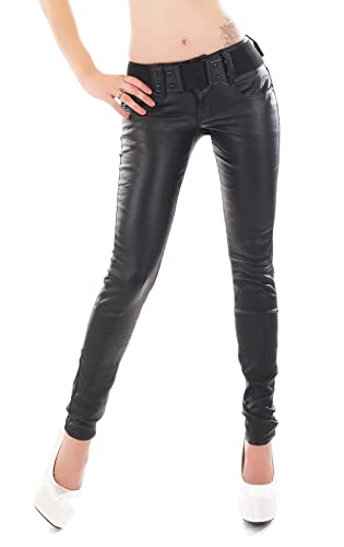 Red Seventy Women's Skinny Trousers Faux Leather Jeans Black Stretch Pants Size UK 10