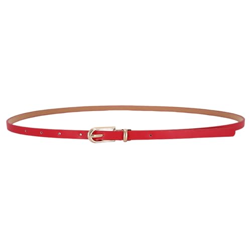 LECTNORE Women Skinny Leather Belt for Dresses Thin Waist Belt with Metal Buckle for Jeans Dress Pants(Red)