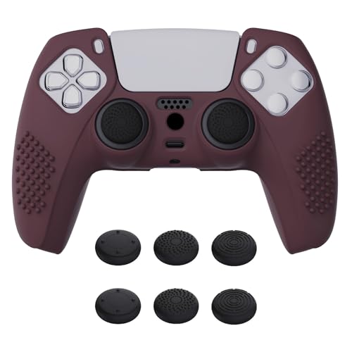eXtremeRate PlayVital Wine Red 3D Studded Edition Anti-slip Silicone Cover Skin for ps5 Controller, Soft Rubber Case for ps5 Wireless Controller with 6 Black Thumb Grip Caps