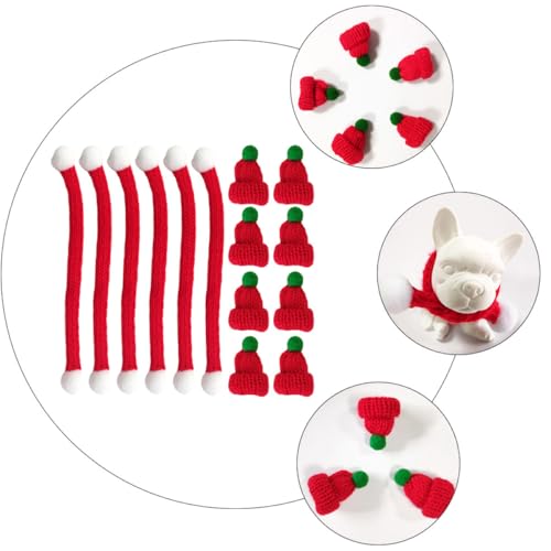 Beaupretty 20pcs Xmas Mini Knit Hats Red Pom Pom and Red Scarves, 4x4cm Woolen Doll Hats and 15cm Knitted Scarves Set for Christmas Decorations and Craft Supplies