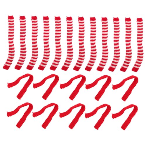 KONTONTY 20pcs Mini Wool Doll Scarves Red White and Red Green Striped 2cm X 20cm Decorative Scarves for Party Supplies and Doll Accessories