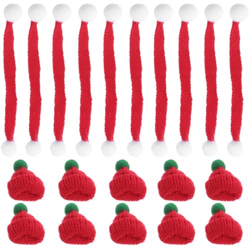 NESTINGHO 20pcs Christmas Doll Beanie Knitted Mini Hat Mini Christmas Hat Scarf for Party Supplies Includes Red Scarves for Doll Decorations and Festive Occasions