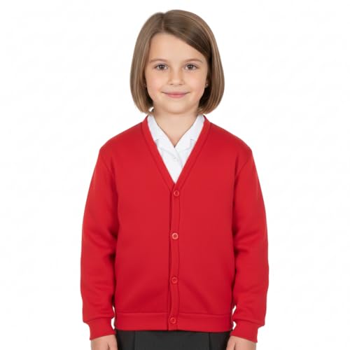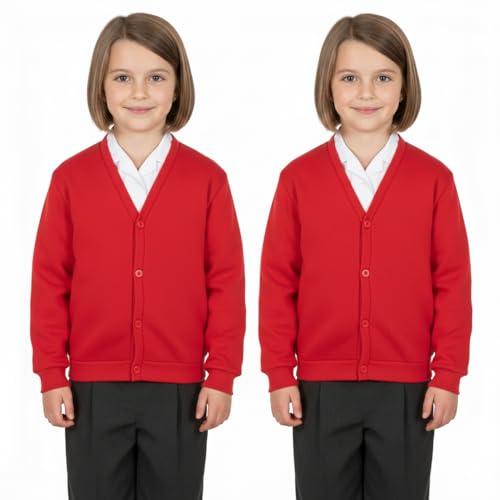 WOOD QUAIL Girls School Cardigan (Pack of 2) Kids Button Cardigan Button Fleece Schoolwear Kids Uniform Sweatshirts UK Size 5-13 Years (13-14 Years, 2X Red)