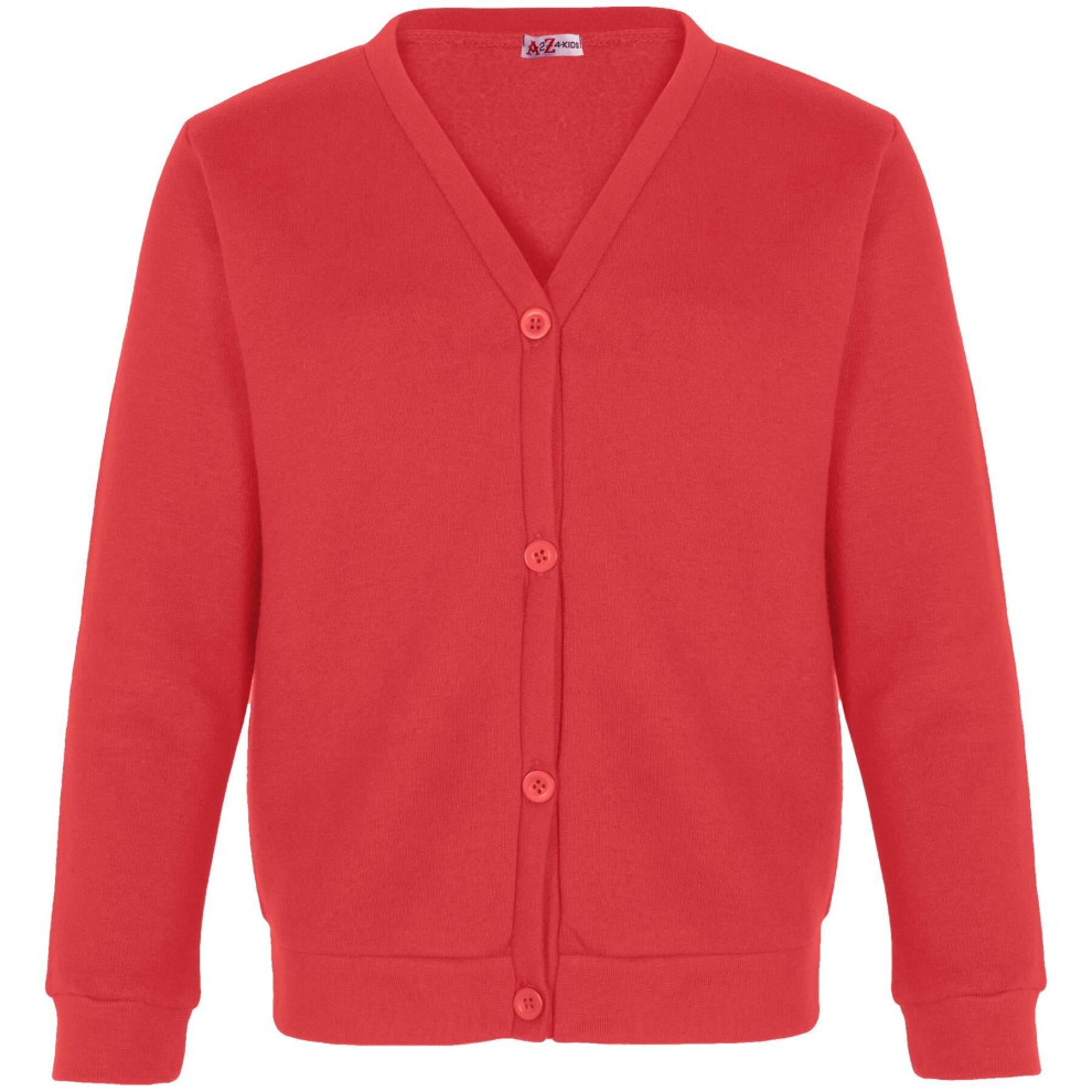 SchoolStitch® Girls Boys School Uniform Long Sleeve Cardigan, Kids Unisex Button up V Neck Jumper, Plain Sweater with Front Pockets, School Cardigans for Girls and Boys Age 2-13 Years Red