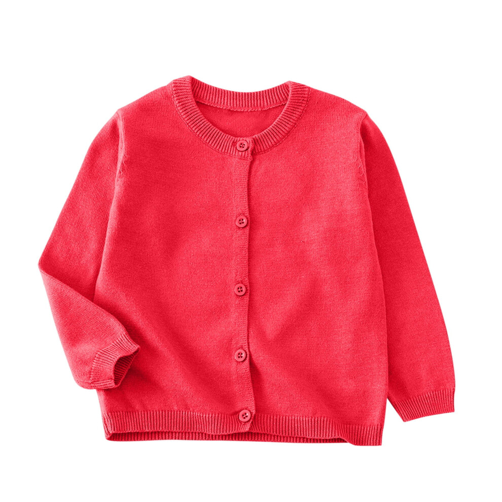 Toddler Girls Boys Sweater Cardigan Long Sleeve Button Down Solid Knit Cardigan School Uniforms Watermelon Red 7-8 Years