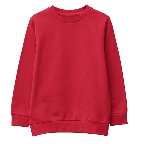 Unisex SweatShirt Boys Girls Fleece Jumper Classic Crew Neck Long Sleeve School Uniform Sweater RED 14-15 (S)