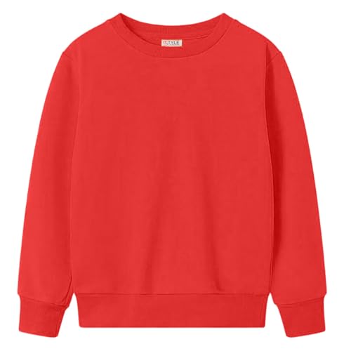 Baby Boys Girls Jumper Sweatshirts Plain Crew Neck Cute School Sport Sweatshirts Kids Long Sleeve Oversized Warm Casual Jumper Tops Clothes Cute Lightweight Hoodie (Red, 6-7 Years)