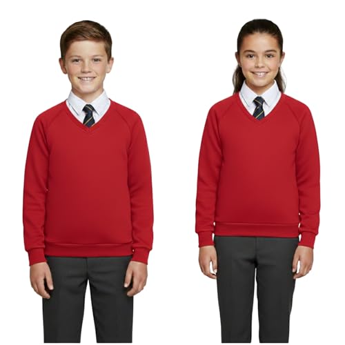 A2Z 4 Kids Girls Boys Unisex Club Scouts School Uniform Single & Pack of 2 V Neck Jumper - V Neck Jumper Red 2 Pack 9-10