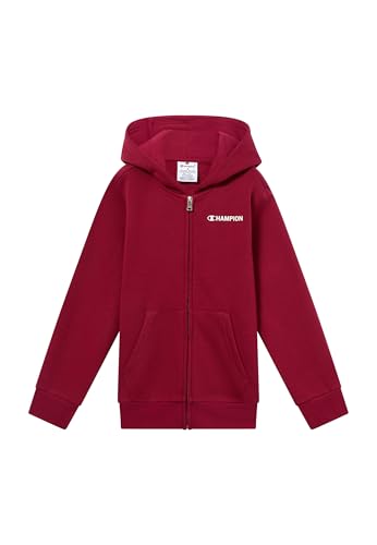 Champion Boys' Hooded Full Zip Fleece Sweater with Graphic logo, large hoodie, ultra soft, warm kids pullover, deep front pockets, PE School jumper Red