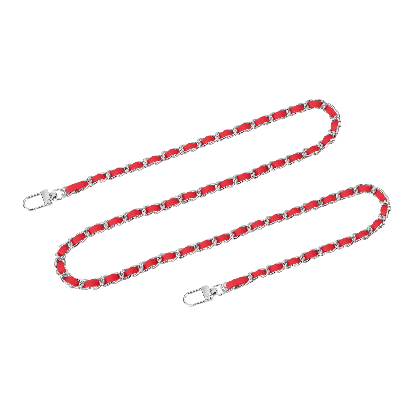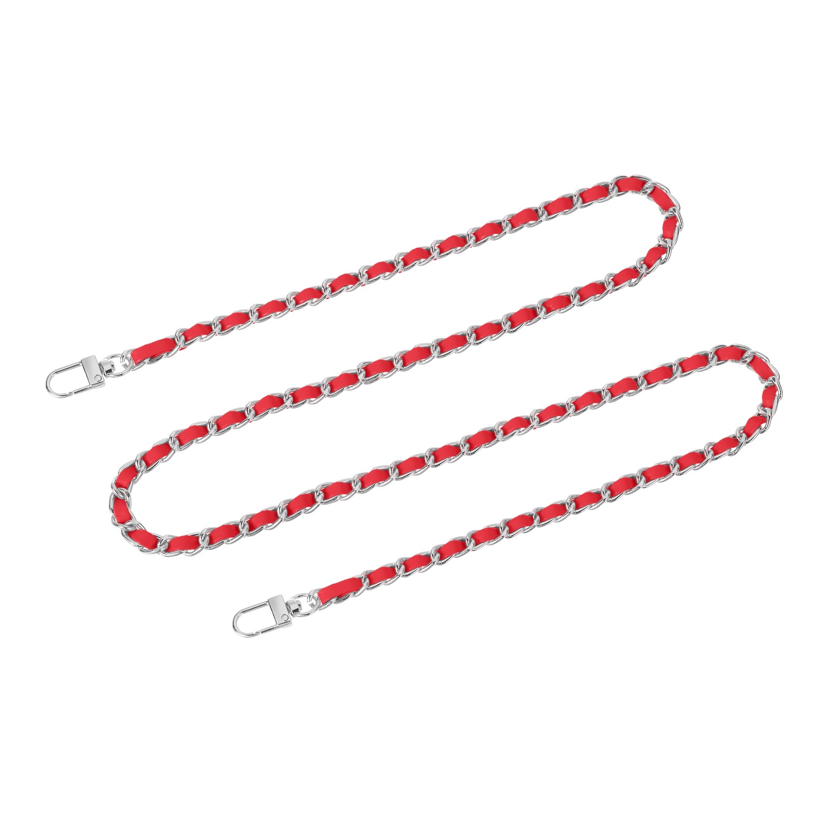 55" Purse Chain Strap with Buckles for Shoulder and Cross Body (Red + Silver)