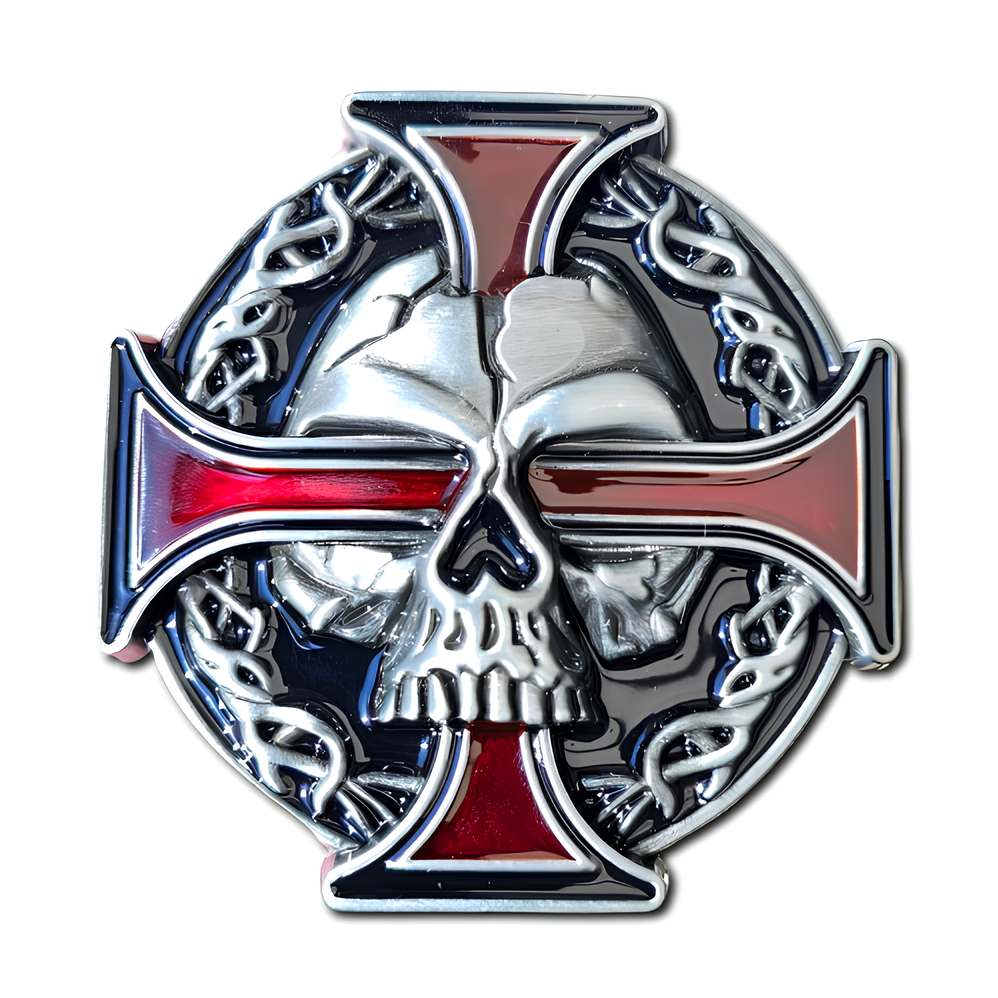 Belt Buckle Skull Cross Red Enamel Gothic Biker Style 80mm Silver Iron Cross