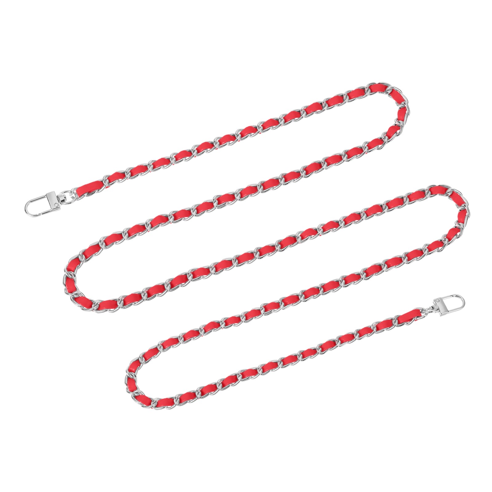47" Purse Chain Strap with Buckles for Shoulder and Cross Body (Red + Silver)