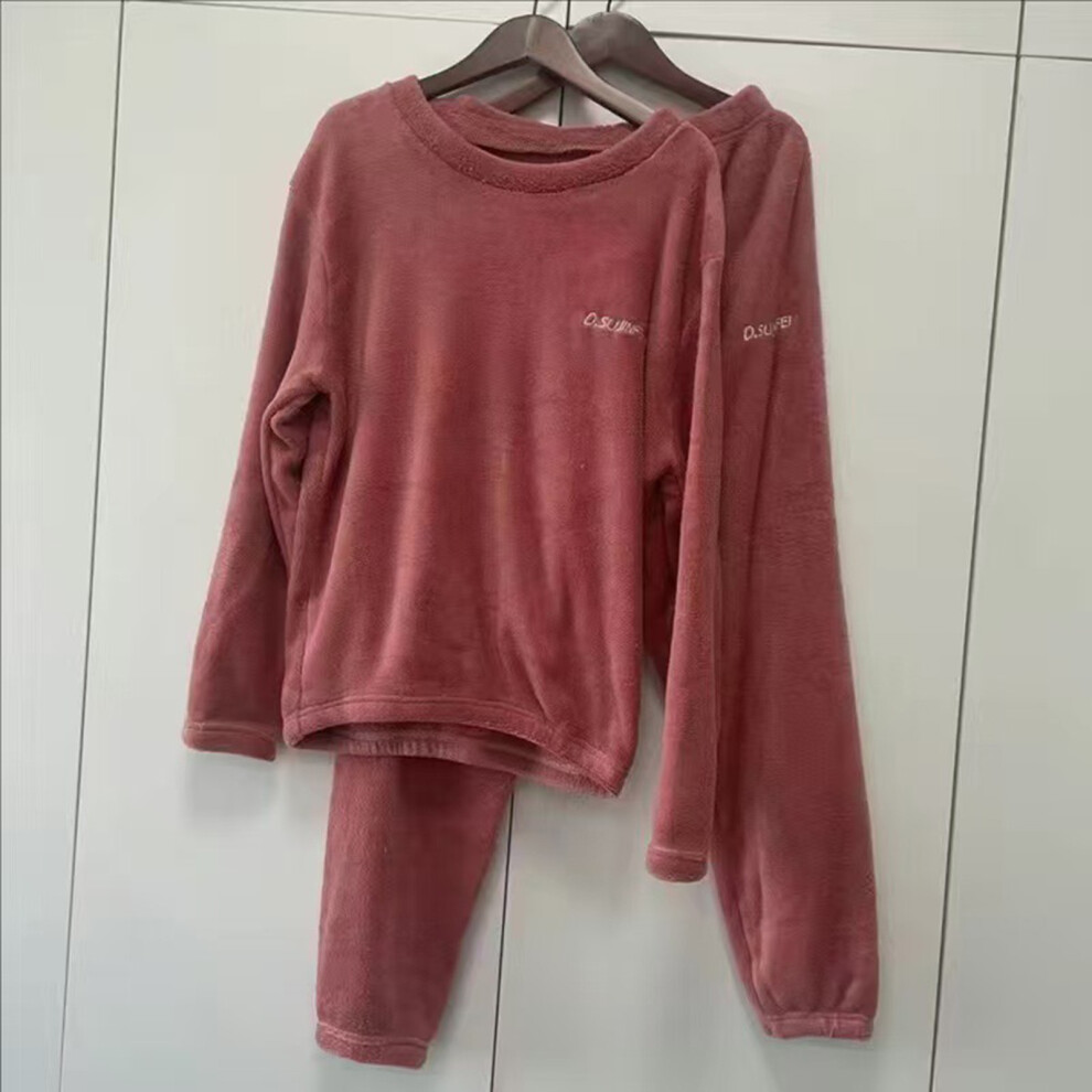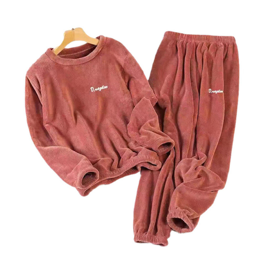 MdybF Pajama sets for women winter Fleece Women Pajamas Set Winter Sleepwear Home Suit Fluffy Warm O-Neck Night Wear-Red-L(60Kg-75Kg)