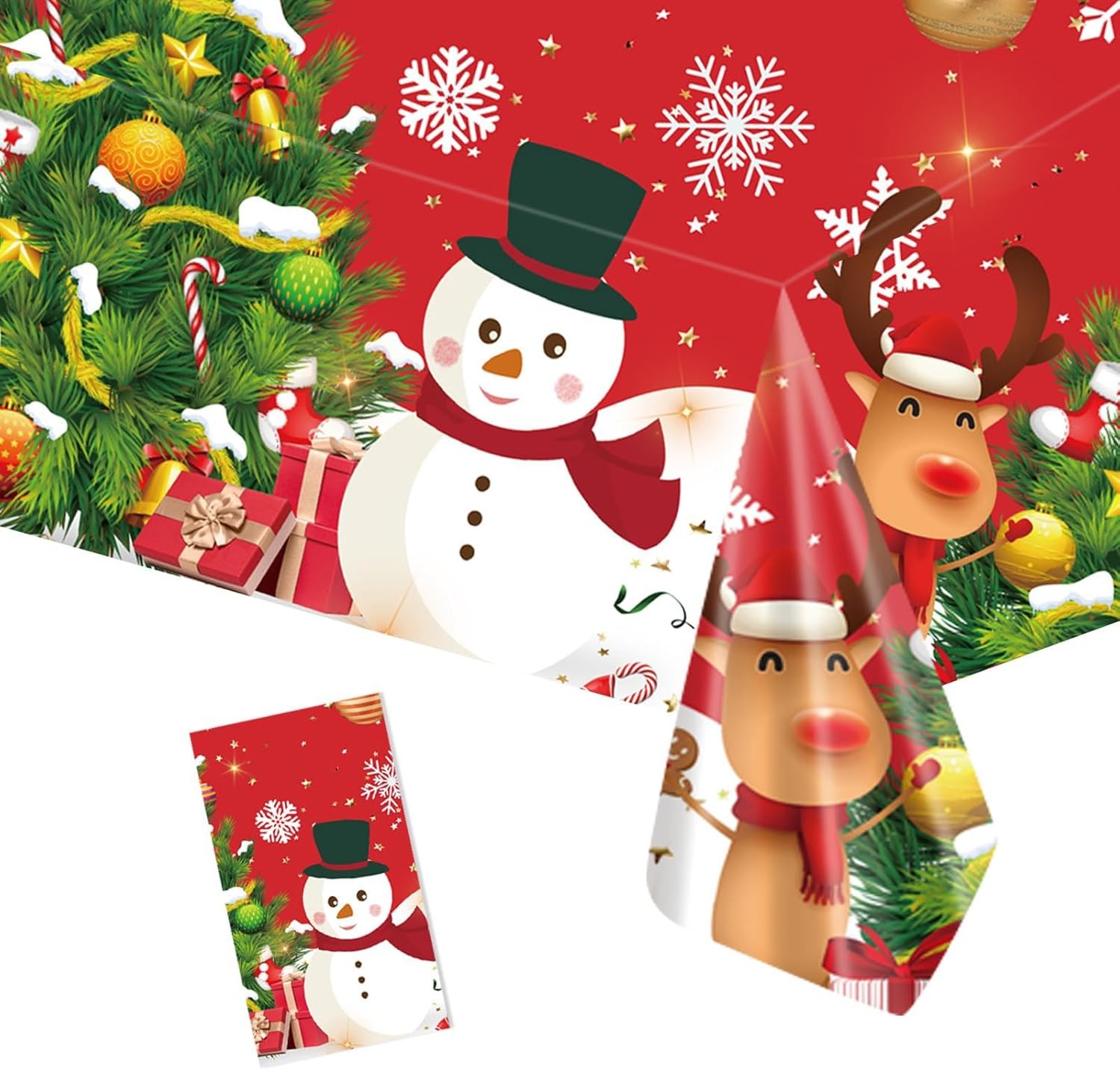POPOYU Christmas Tablecloth,137x274cm Large Xmas Snowman Elk Red Table Cloth,Re